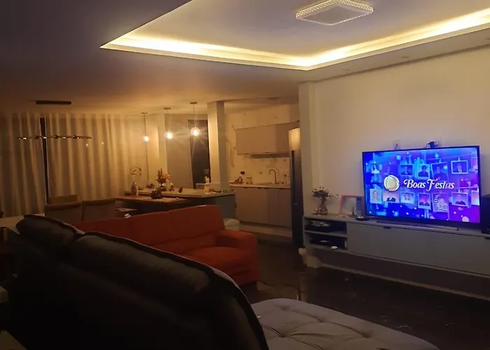 Situated nearly 25 minutes' walk from the Morro do Careca, the 4-bedroom Beach House Delegado Marcio Balneario Camboriu villa features a terrace with views of the pool. Offering a swimming pool, this beachfront villa invites guests to visit the Pr do Pinho Nudist Beach, located around 3 km away.